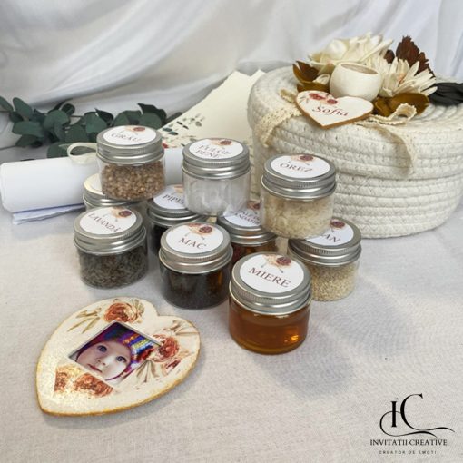 Setul de mirodenii pentru prima băiță cu nașii este un cadou de suflet. Este creat pentru a păstra vie tradiția românească a băiței de după botez.