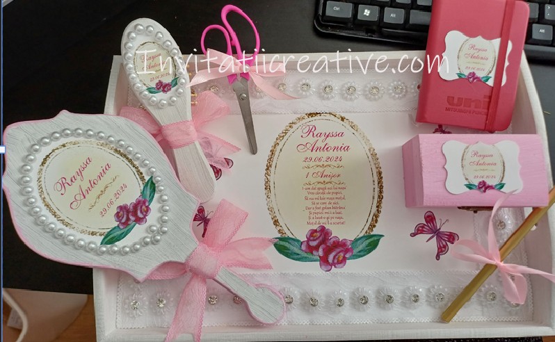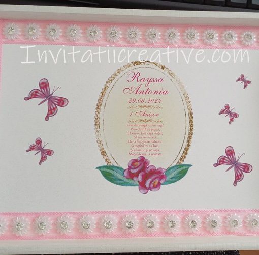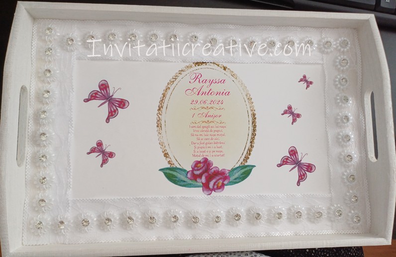 Tavita Personalizata Mot – Turta cu Model Floral si Perle