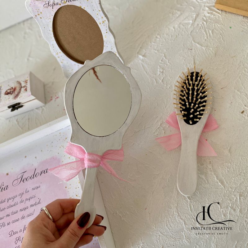 Toate obiectele din set sunt din lemn, pictate manual si decorate cu tehnica decoupage.