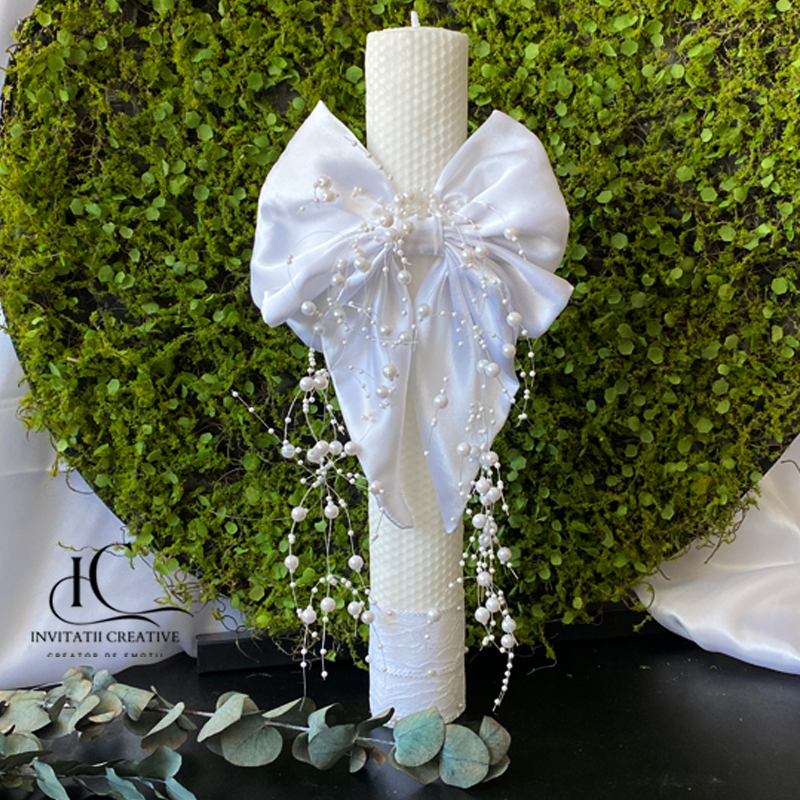 Lumânare de botez din ceară naturală de albine – un accesoriu elegant, artizanal, perfect pentru ceremonia voastra.