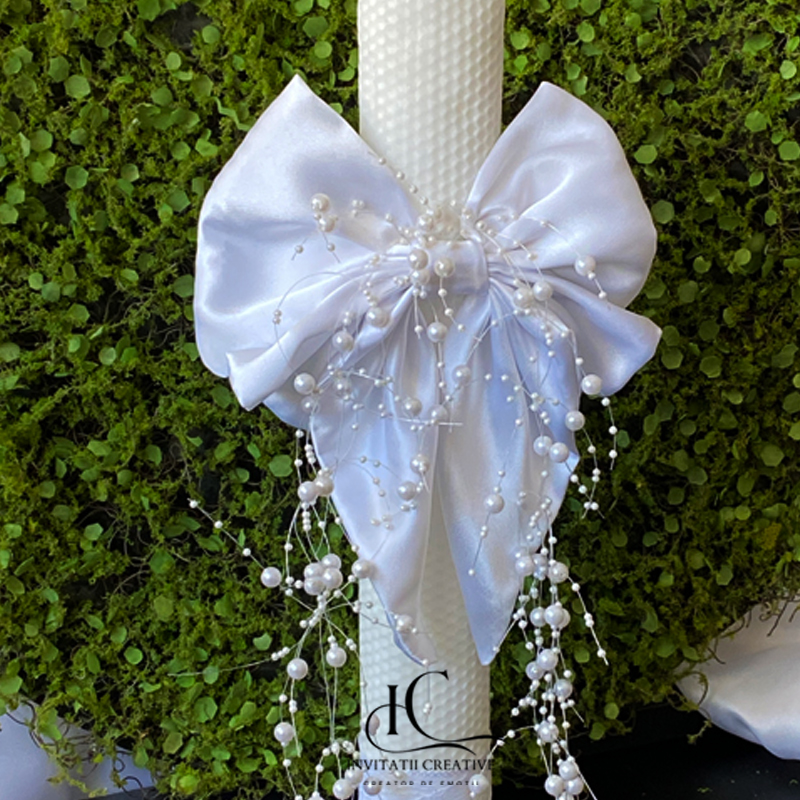 Creată manual cu grijă și inspirație, Lumanare cununie religioasa White Pearls îmbină puritatea albului cu un accent natural de alb, simbolizând începutul plin de speranță al unei vieți noi.