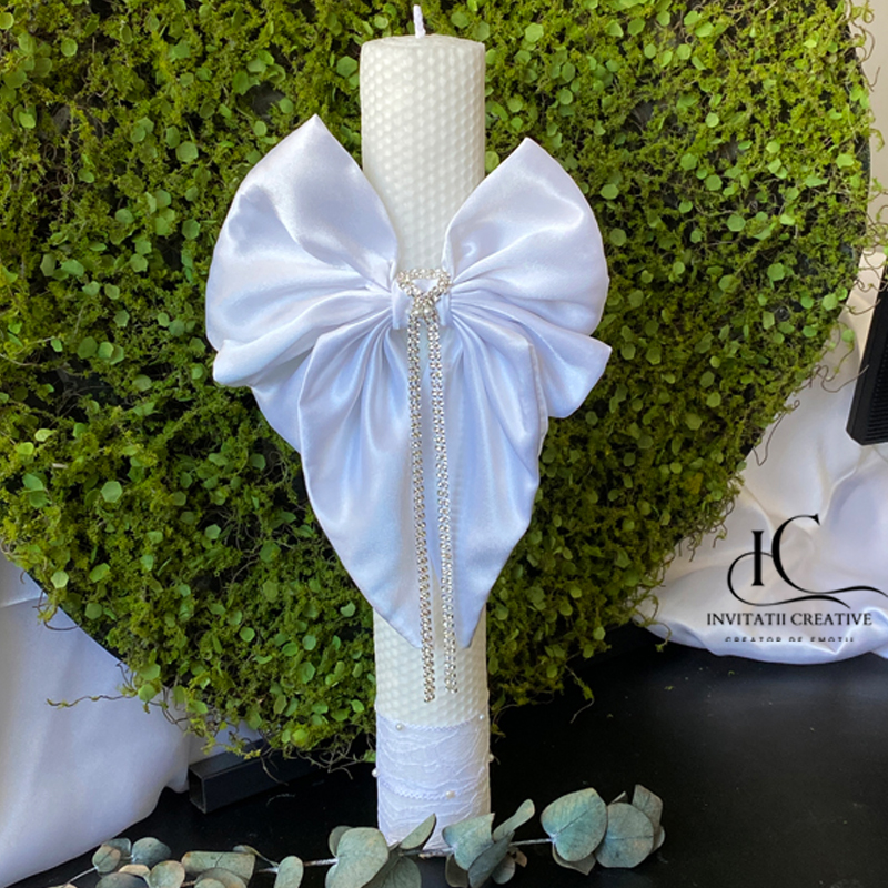 Lumânare de botez din ceară naturală de albine – un accesoriu elegant, artizanal, perfect pentru ceremonia voastra.