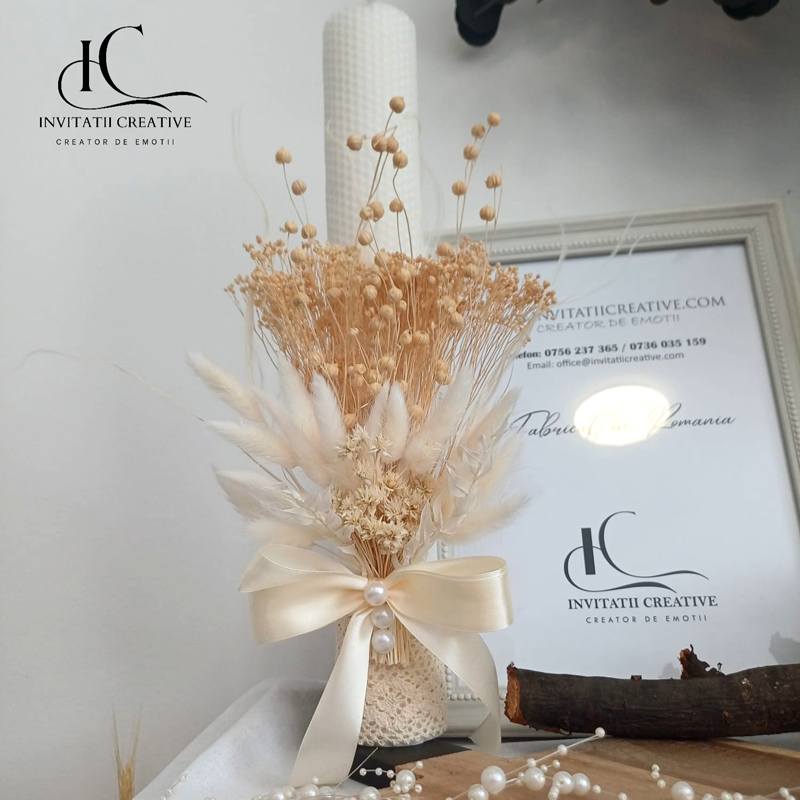 Lumanare de nunta cu flori uscate si dantela Touch Natural