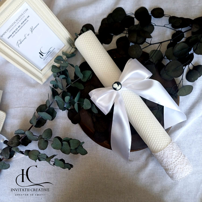 Lumanare pentru nunta stil minimalist cu camee