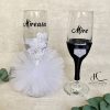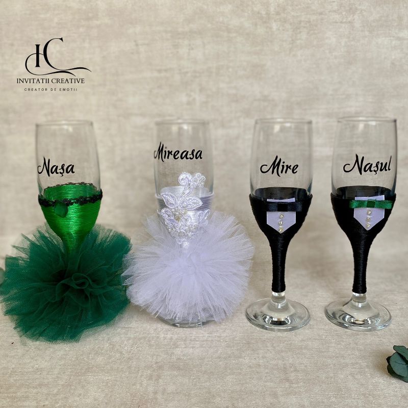 Set 4 Pahare Miri si Nasi Personalizat cu Dantela si Strasuri