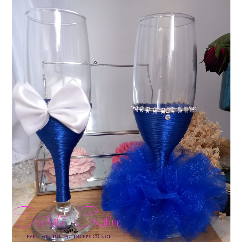 Set Nunta 2 Pahare Nasi Elegante Albastre