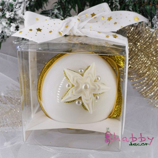Fiecare Ornament de Crăciun este turnat manual și accesorizat cu grija și atenția cuvenita. Culoarea panglicilor poate fi modificata, în limita stocului disponibil!