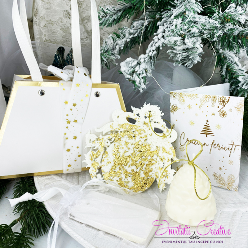 Set Cadou Craciun cu decoratiuni deosebite aurii