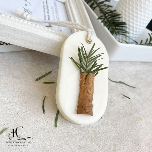 Ornament parfumat/odorizant dulap, ceară soia pură- Odorizant decorativ Crăciun scortisoara si crenguta de brad