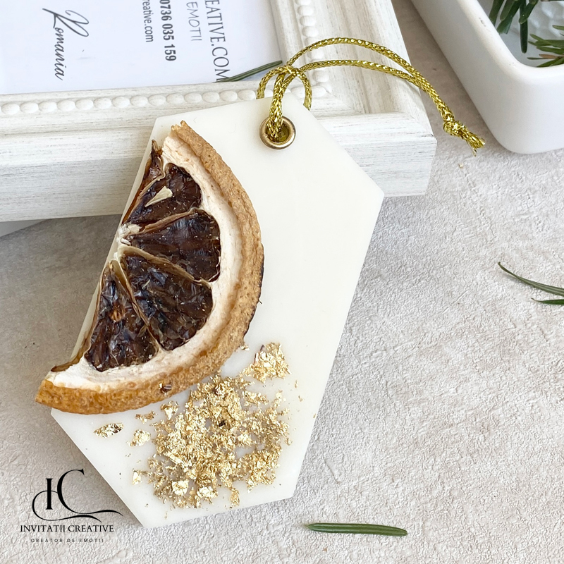 Ornament parfumat/odorizant dulap, ceară soia pură- Odorizant natural pentru dulap cu lămâie confiată și foita aurie