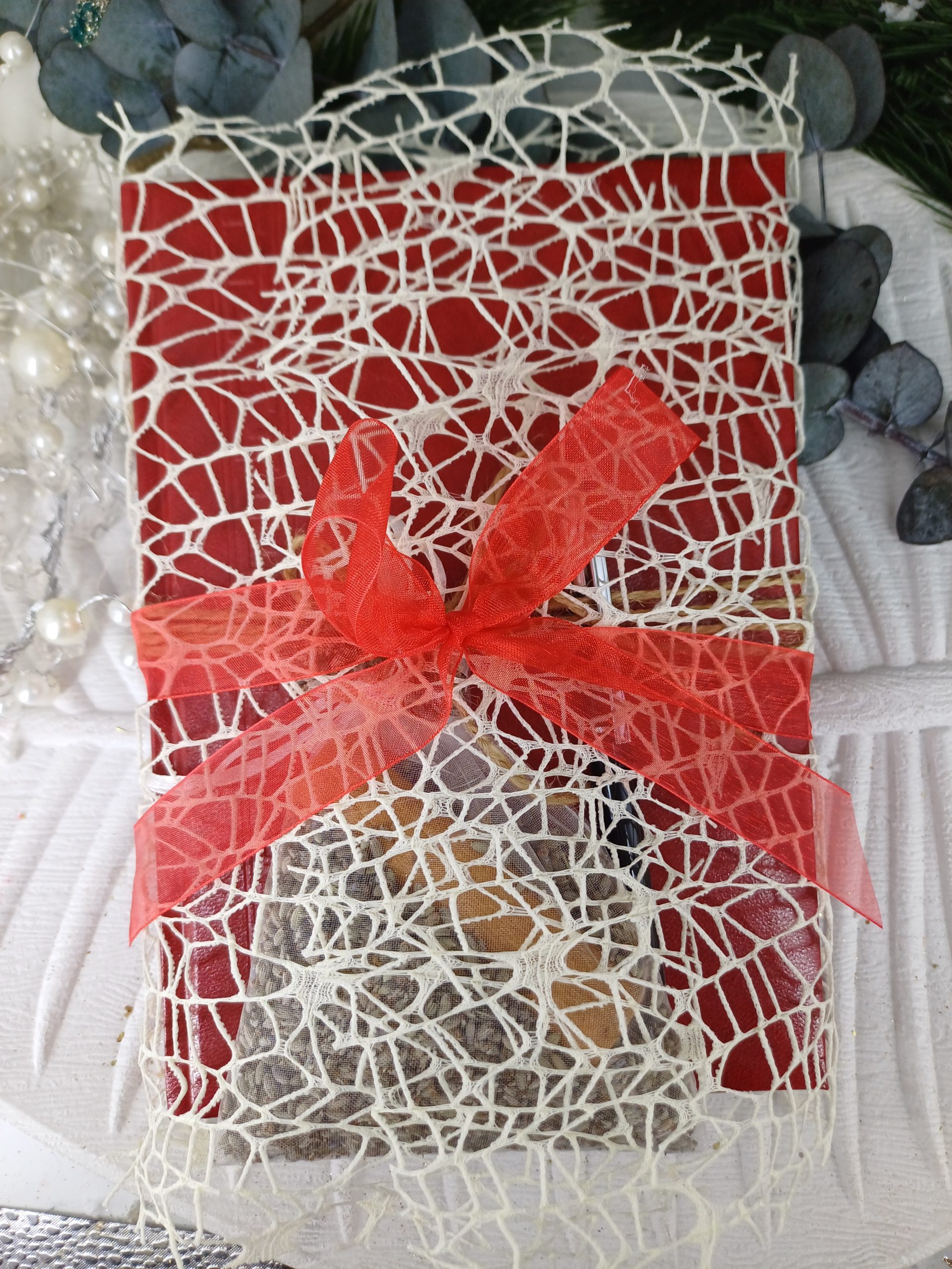 – Agenda si pix decorate cu sfoara de iuta, un baton scortisoara cu lavanda (saculetul poate fi folosit ca odorizant in dulapul de haine, prosoape, masina, etc)