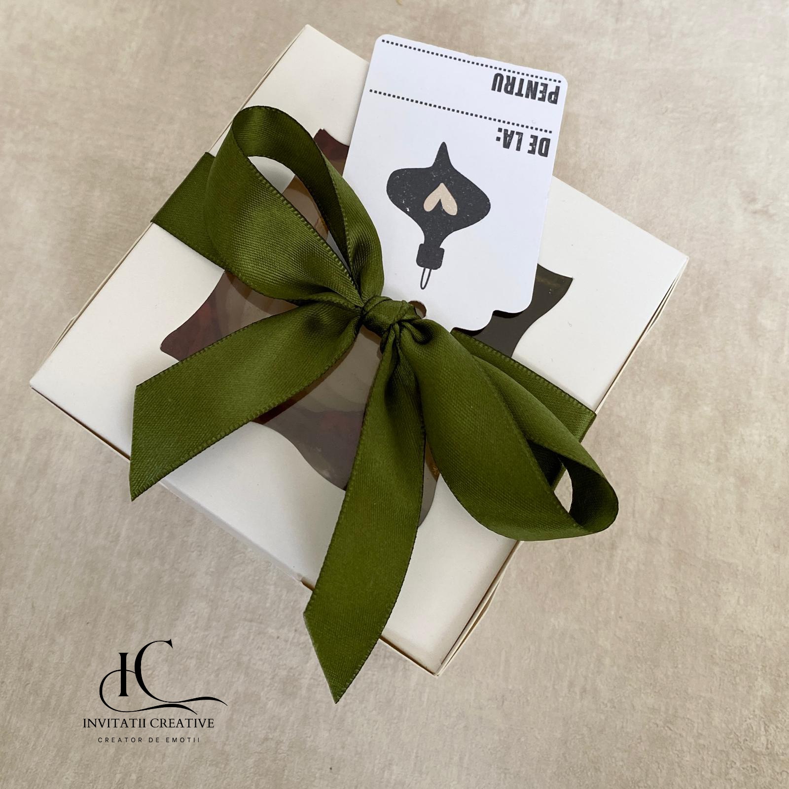 Ambalare cadou inclusă în preț in Saculet de organza si Cutie cu eticheta standard* si fundita**.