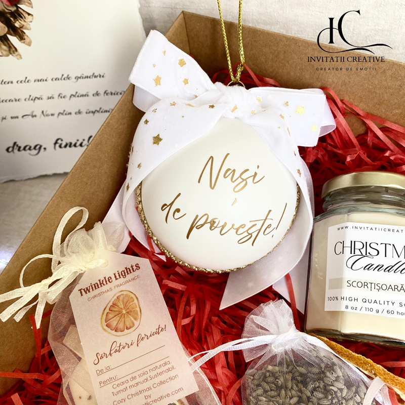 Acest set cadou este conceput pentru a fi oferit in dar nasilor si fiecare produs este realizat manual de noi in atelier.