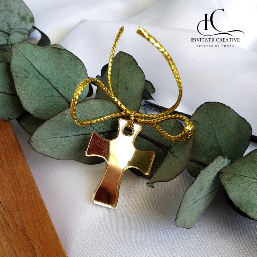 Transformă momentul botezului într-o amintire cu suflet și stil cu aceste cruciulițe aurii din pexiglas, atent create pentru a transmite rafinament, protecție și bucurie.