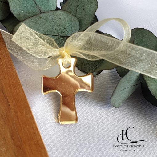 🕊️ Cruciulițe de botez aurii din pexiglas – Eleganță simbolică, grijă pentru detalii