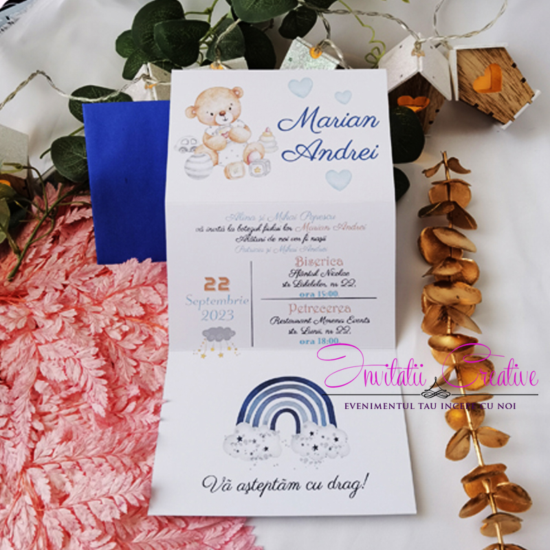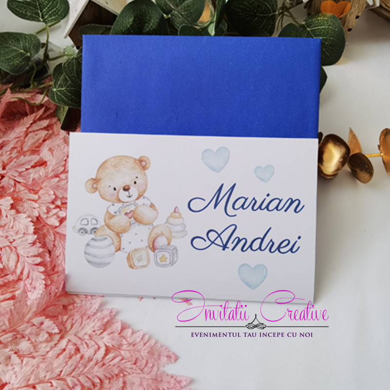 Invitatie Botez cu Ursulet si Jucarii de Bebe