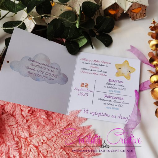 Invitatie Botez Curcubeu si Inimioara Watercolor