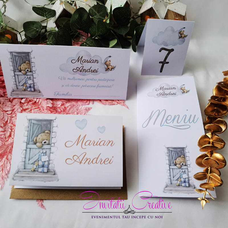 Invitatie Botez Dragalasa Watercolor cu Ursuleti