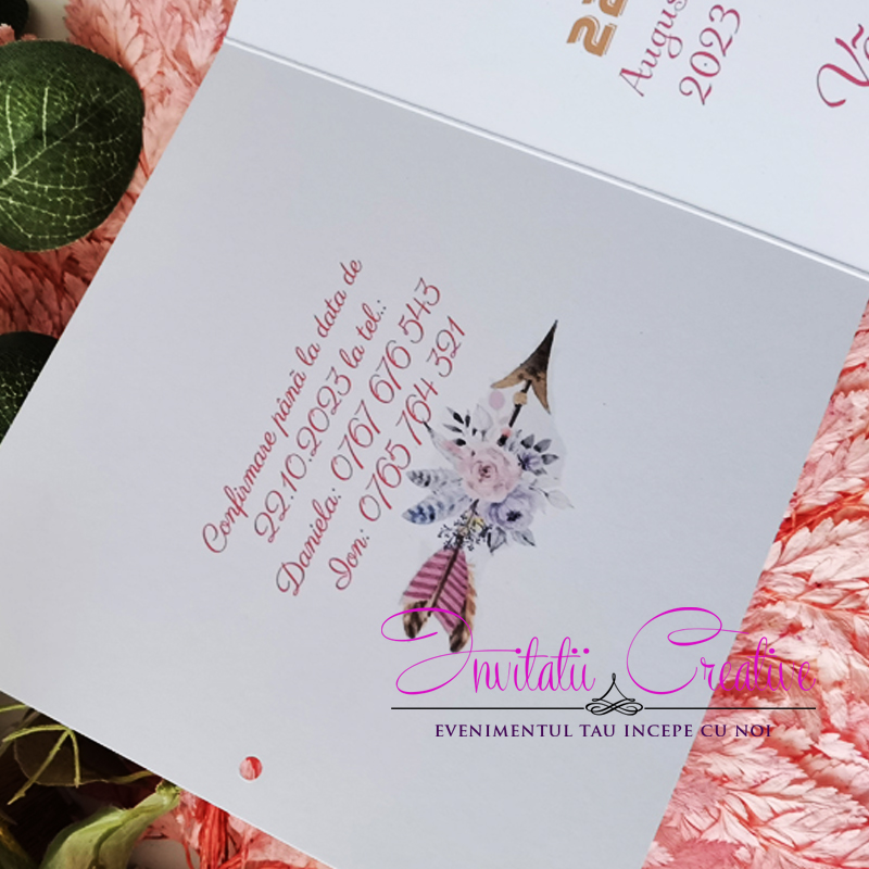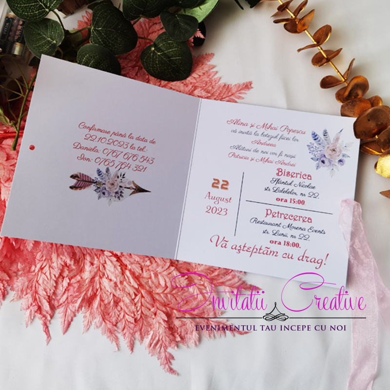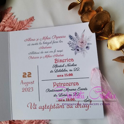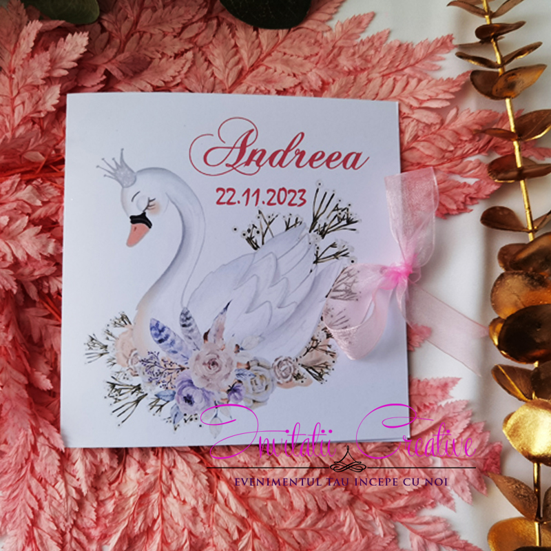 Invitatie Botez Lebada Regala cu Motiv Floral