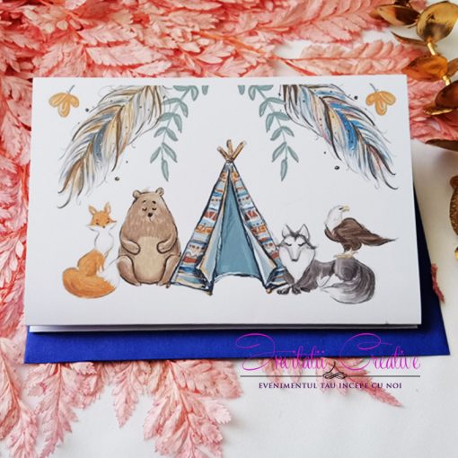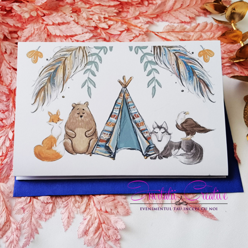 Invitatie Botez Tematica Boho cu Animalute Indieni