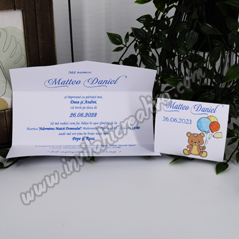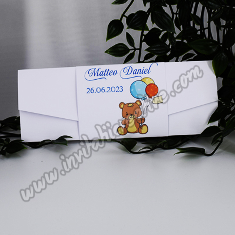 Invitatie de Botez Dragalasa cu Ursulet cu Baloane