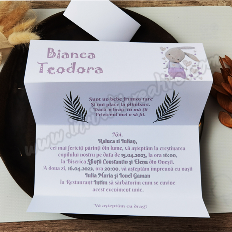 Invitatiile pot fi realizate si cu un alt motiv tematic, in functie de preferinte.