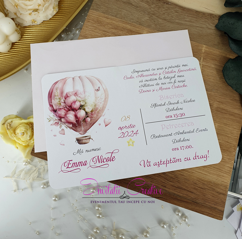 Alege din sutele de modelele de invitatii potrivite pentru evenimentul tau cu tematici variate precum vintage, florale, moderne, clasice, haioase, ori poti opta pentru personalizarea cu poza preferata.