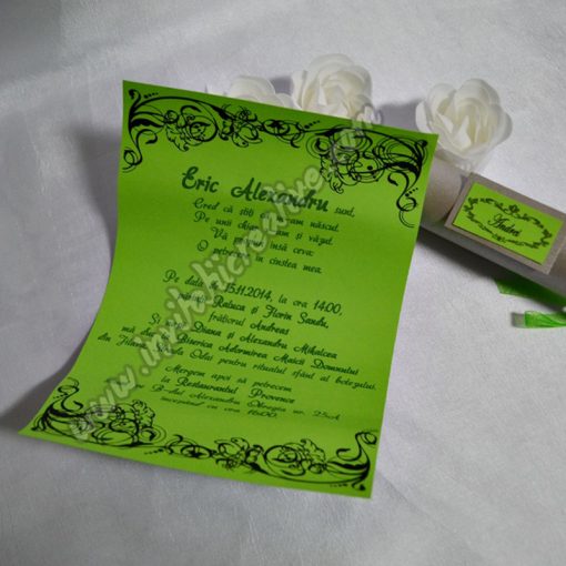 Daca doriti o invitatie originala invitatiile handmade papirus verde sunt perfecte.