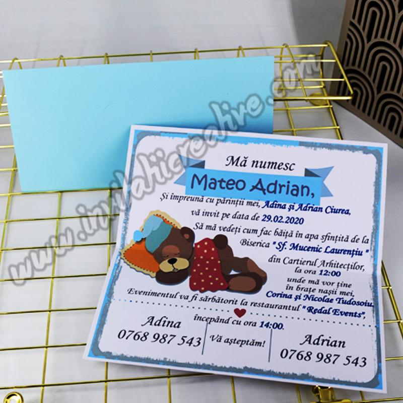 Invitatie Botez cu Ursulet Dragalas Dormind