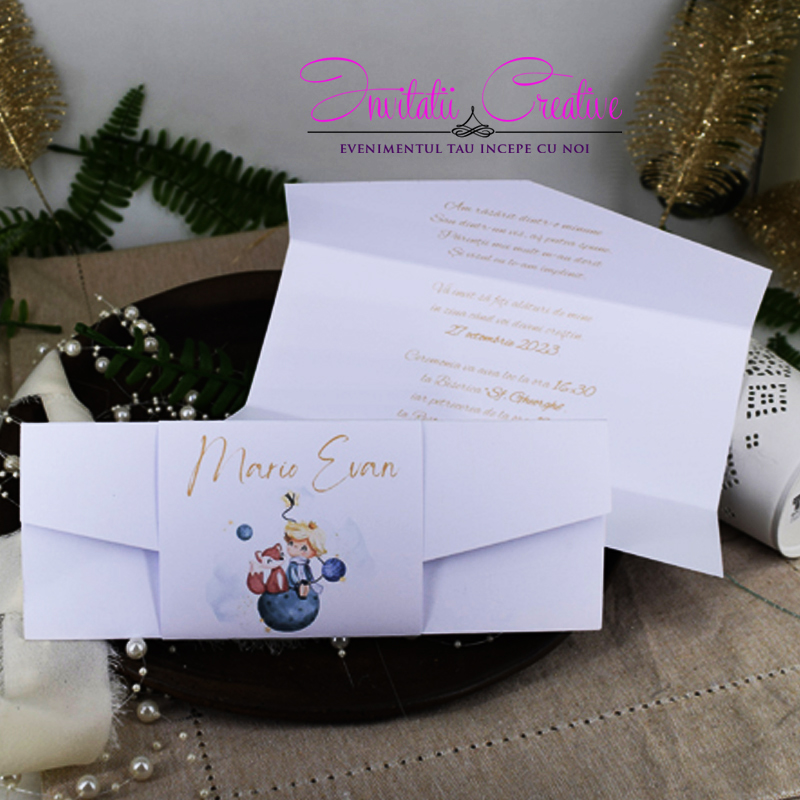 Fac parte din categoria Invitatii de Botez. Poti solicita mai multe informatii legate de acest produs consultantilor site-ului www.invitatiicreative.com, telefonic (0736 035 159, 0756 237 365), pe email (office@invitatiicreative.com) sau pe chat-ul de pe site.