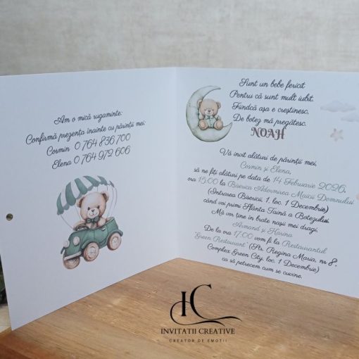 Invitatie de Botez Haioasa cu Ursuleti pe Verde