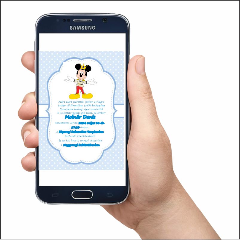 Invitatie Electronica Botez cu Mickey Mouse Rege perfecta pentru a anunta marele eveniment chiar si persoanelor dragi ce sunt departe.