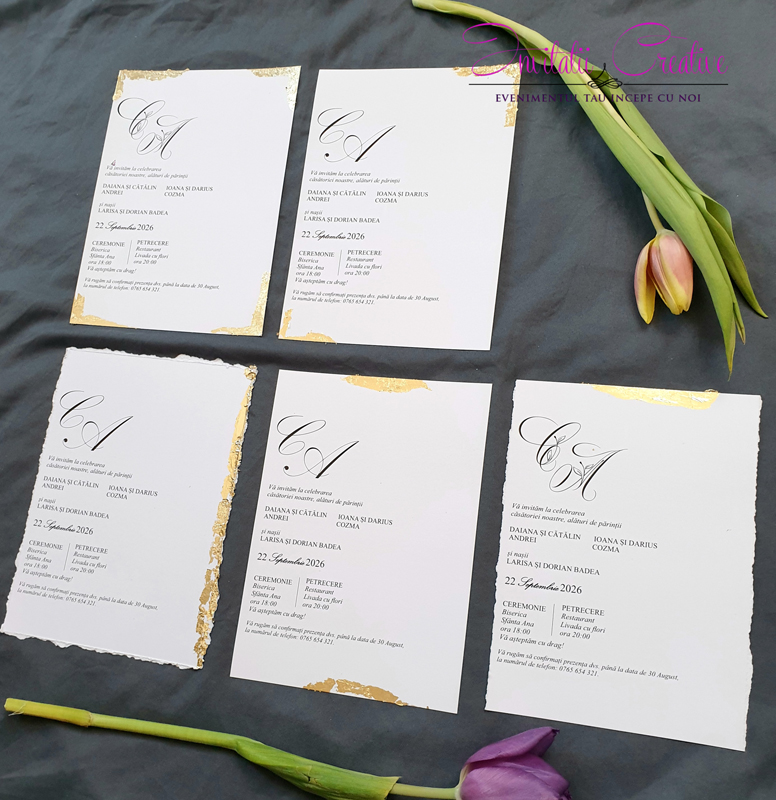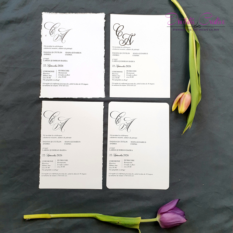 Invitatiile pot prezenta mici variații în ceea ce privește textura sau culoarea, în funcție de lotul primit de la furnizor.