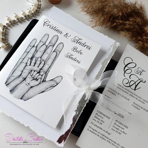 Transformă acest moment unic într-o amintire elegantă și plină de emoție! Comandă acum și surprinde-ți invitații cu un design sofisticat, ce îmbină tradiția cu rafinamentul. 🎉👶💍✨