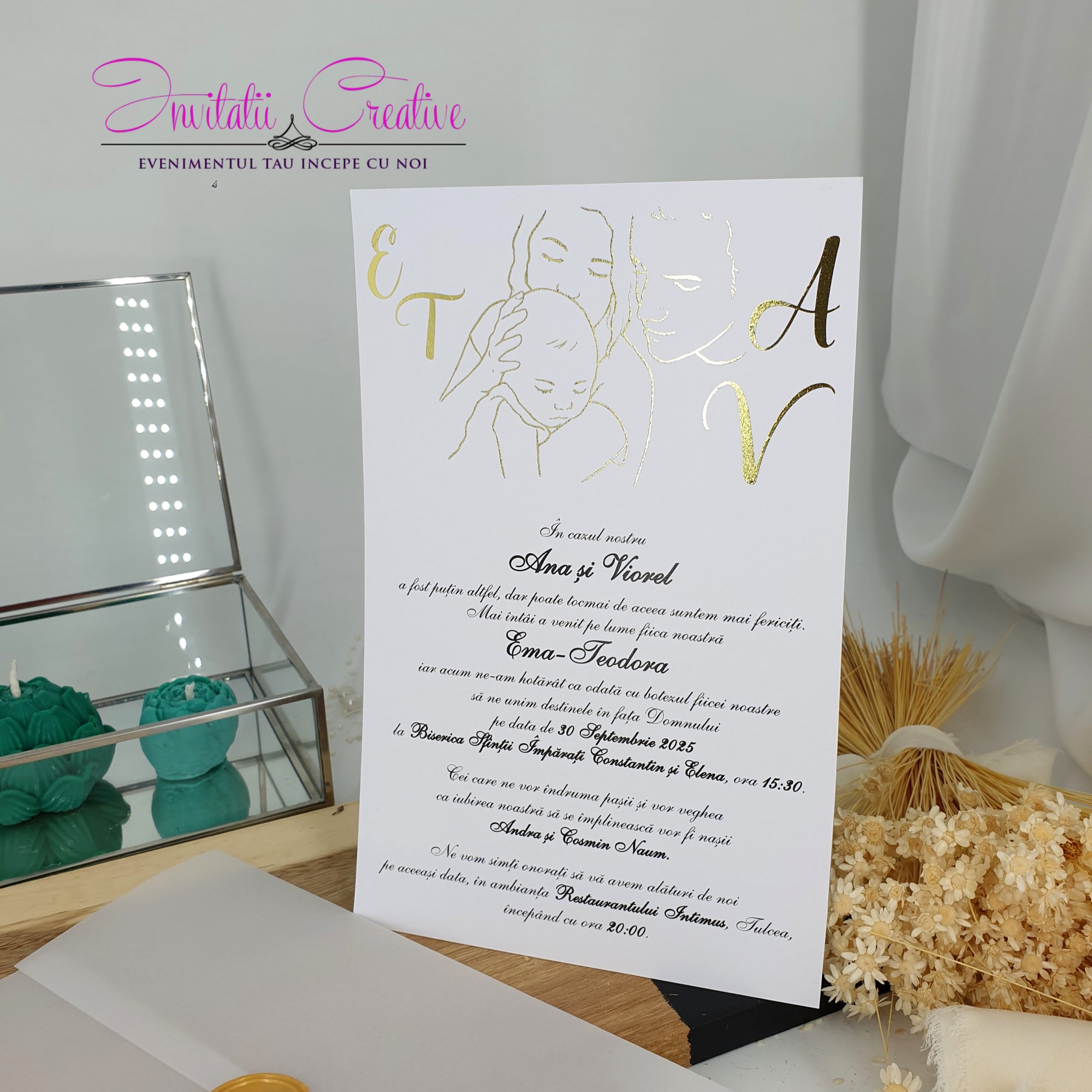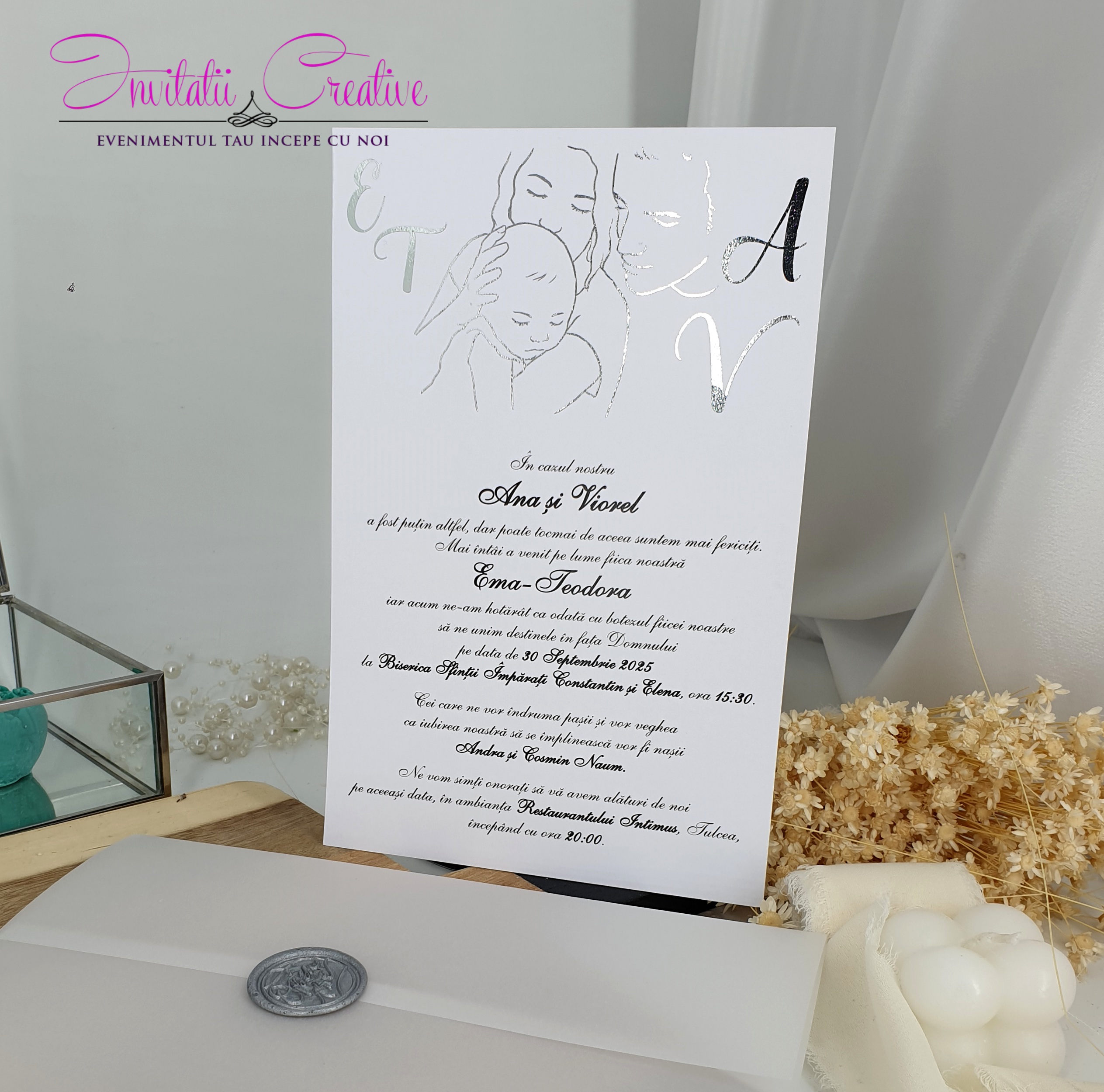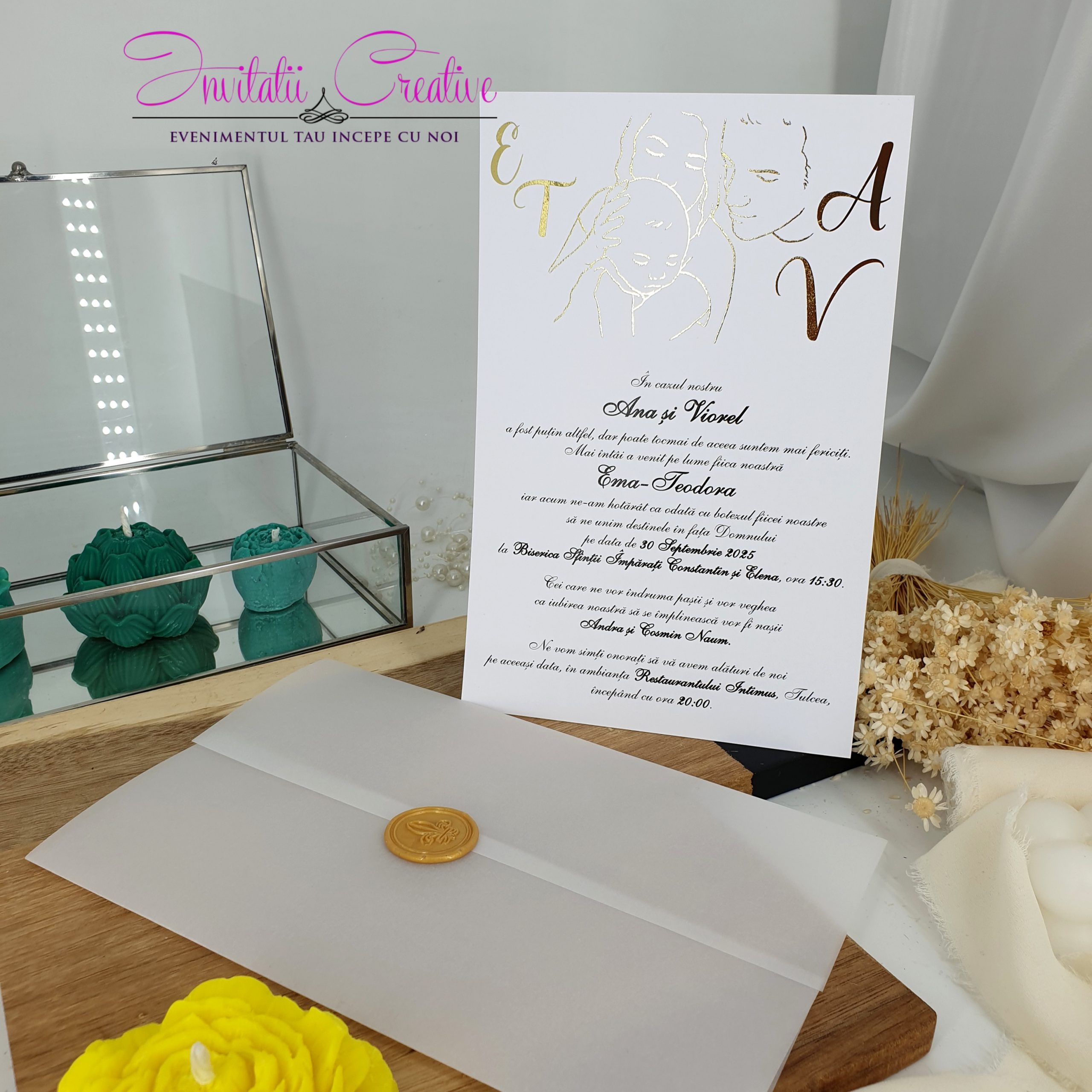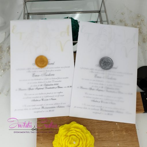 Invitatie Nuntez Sigiliu si Folie Metalizata Parinti si Bebe