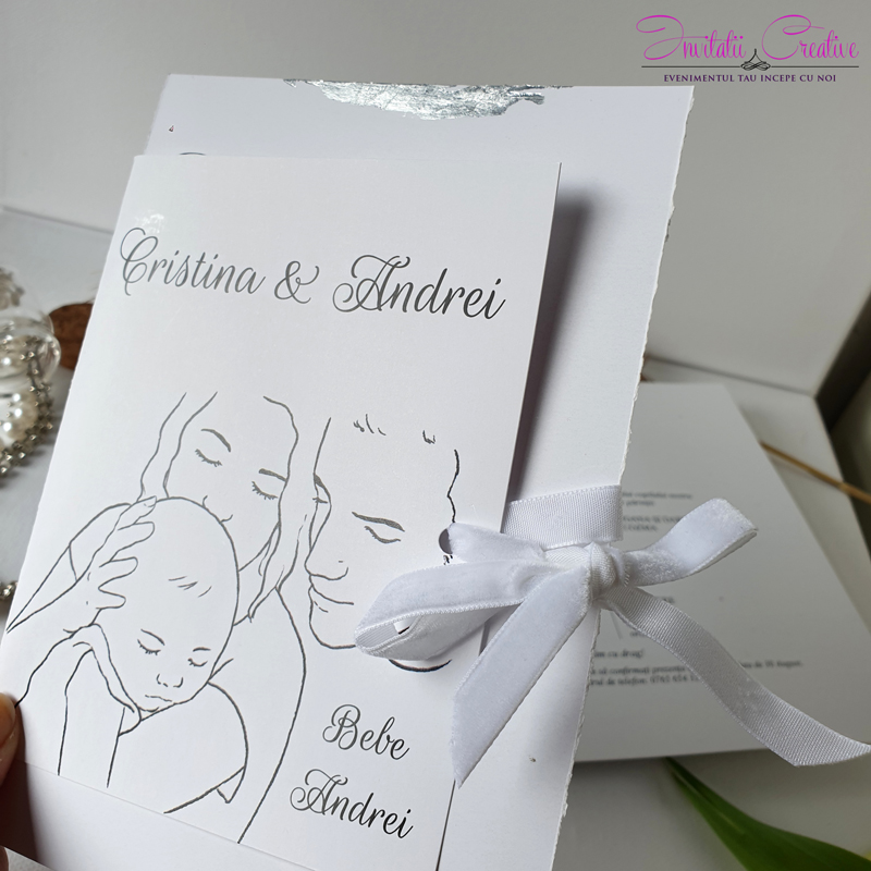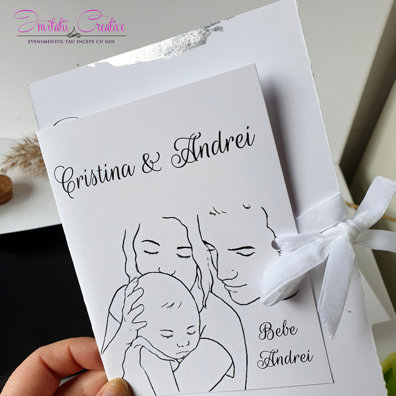 Creată pe carton premium de 300 g, cu print digital laser pentru un aspect impecabil, această invitație este rafinată, dar și plină de emoție. Într-un format elegant, transmite un mesaj cald și personalizat către cei dragi.