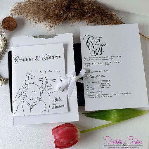 Caracteristici ale produsului:Invitatii Nuntă & Botez 2 in 1 stil minimalist: