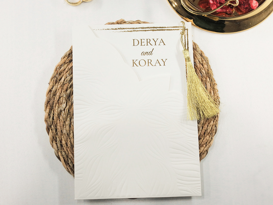 Invitatie de Nunta Eleganta cu Ciucuras Auriu 2455