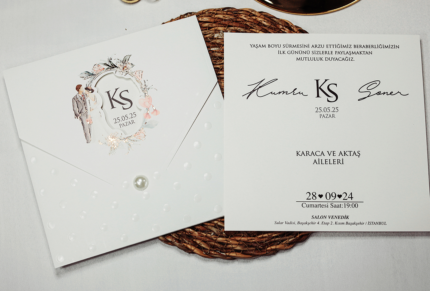 Invitatie de Nunta Eleganta cu Miri si Motiv Modern 2409