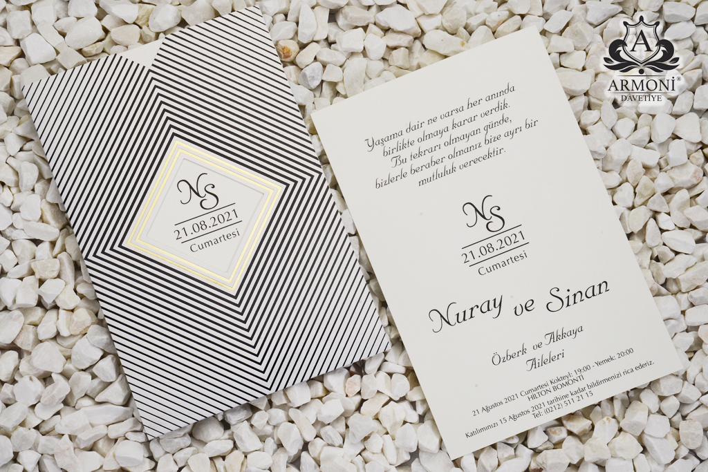 Invitatii de nunta confectionate dintr-un carton mat destinat textului. Acesta se introduce intr-o alta piesa tip buzunar cu model si decupaj prin care se vede numele sau initialele mirilor. Invitatia nu contine plic clasic. Se personalizeaza cu textul pe care il doriti, corespunzator evenimentului dvs.