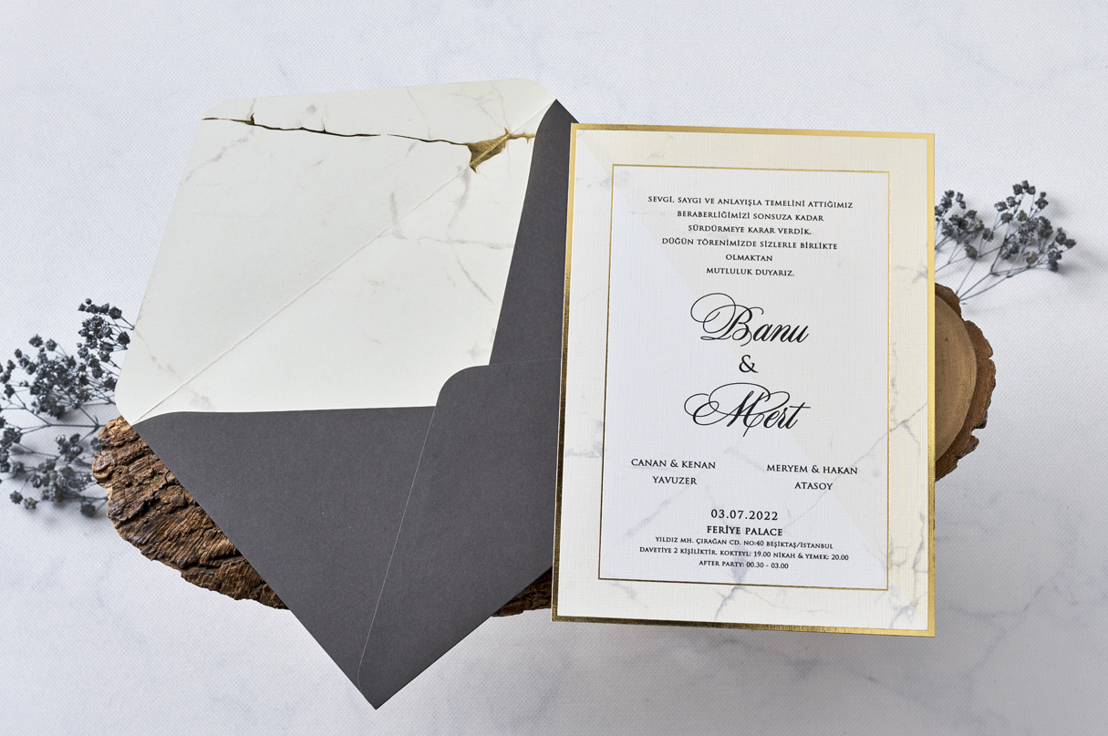 Invitatie de Nunta cu Detalii Aurii Elegante 1175