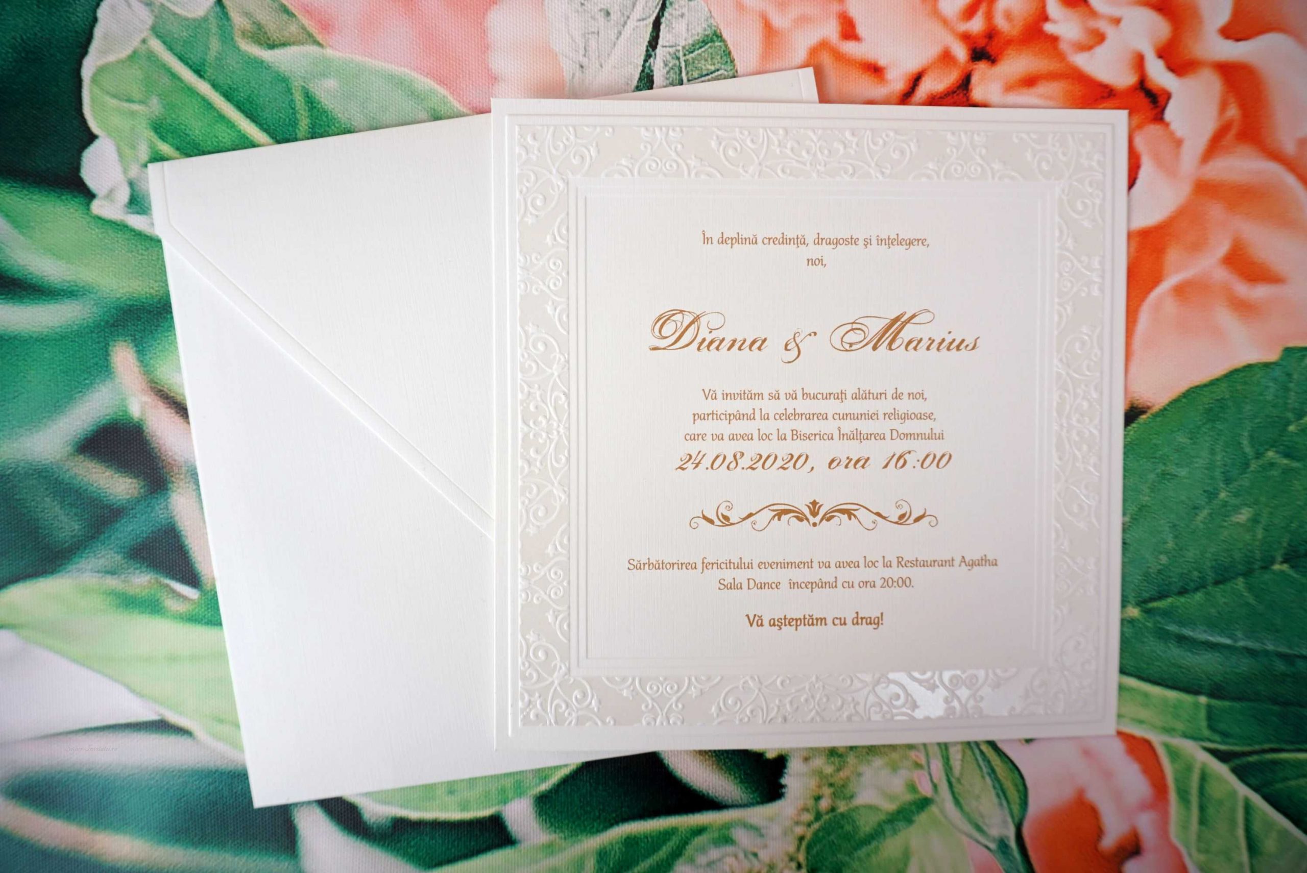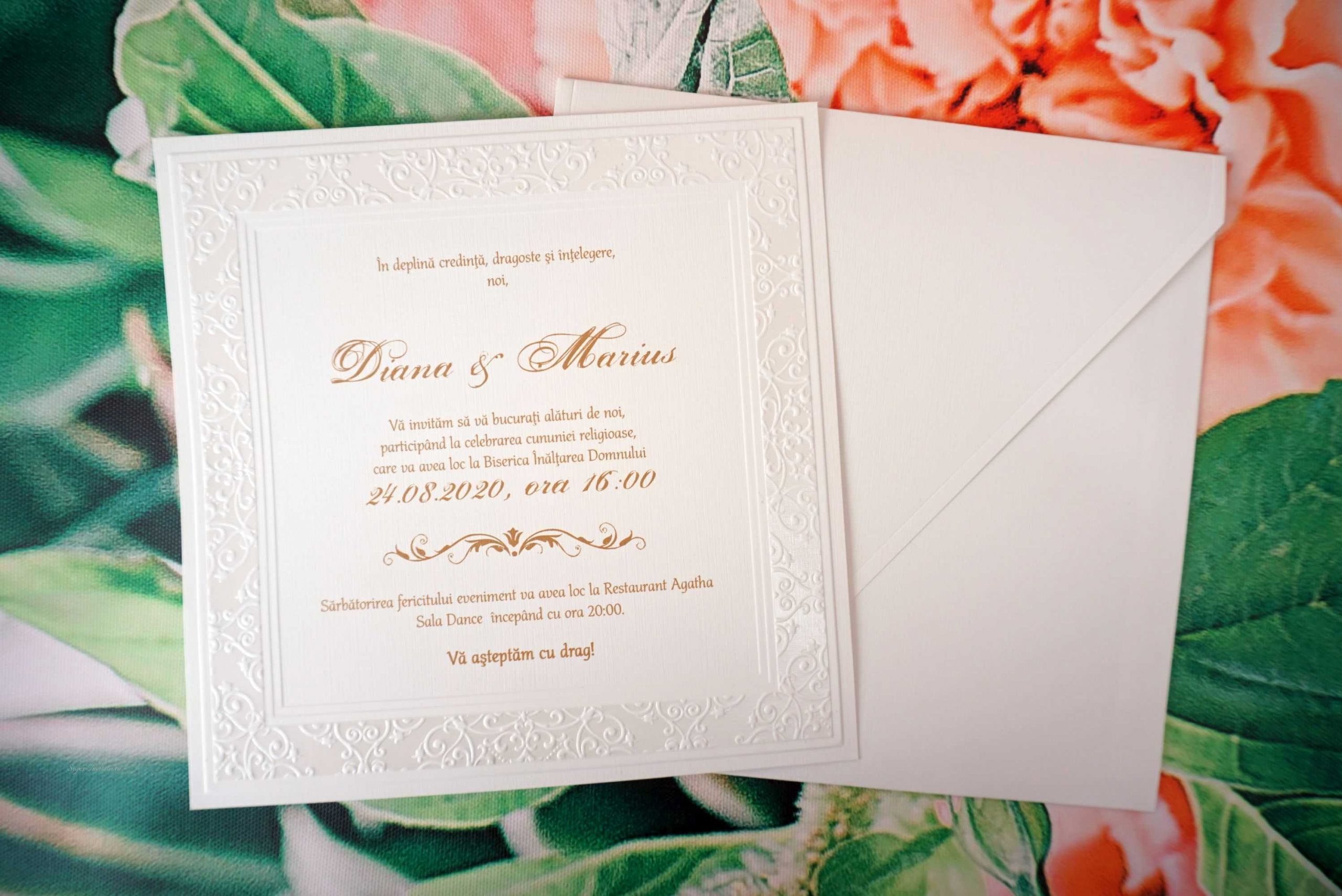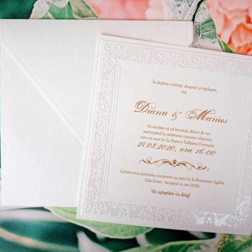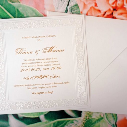 Invitatie de Nunta Eleganta cu Model Vintage Embosat 1121