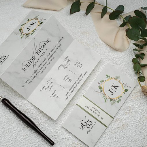 Invitatie de nunta cu frunze verzi 9209