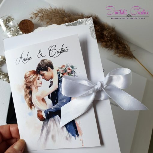 Invitatii de nunta cu miri indragostiti