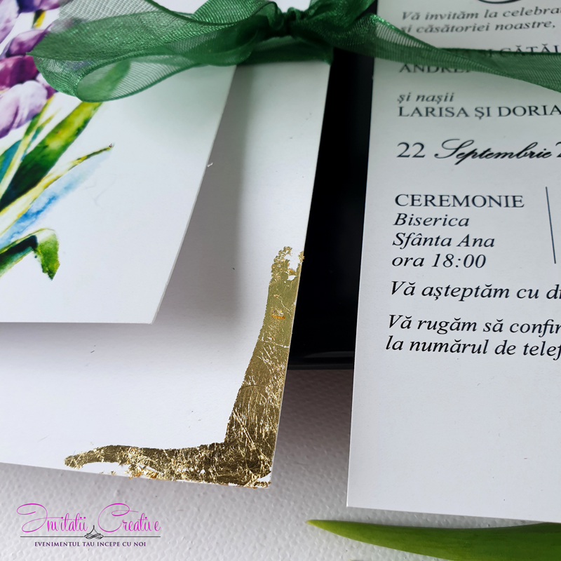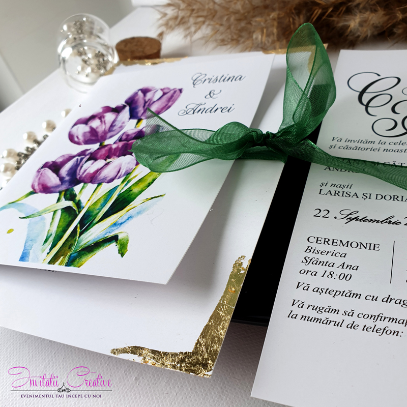 Invitatii de nunta florala cu lalele mov
