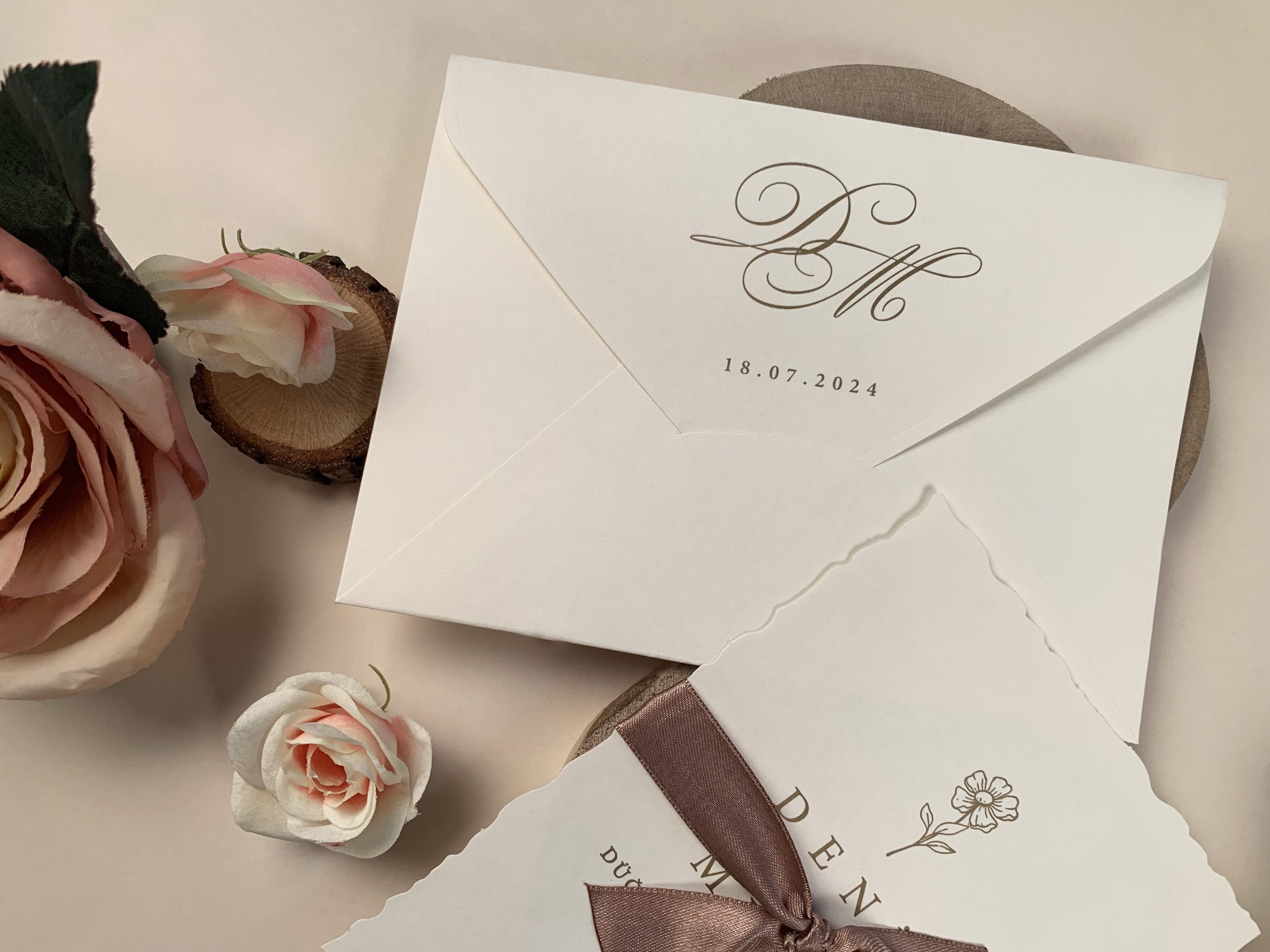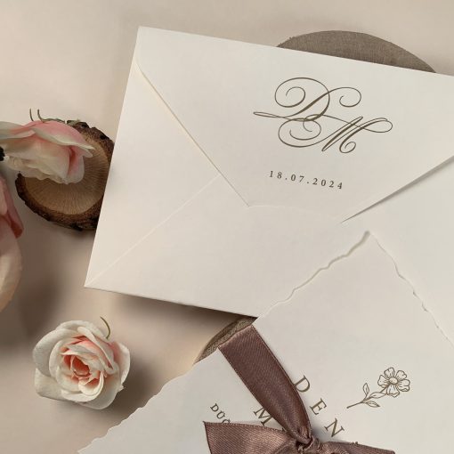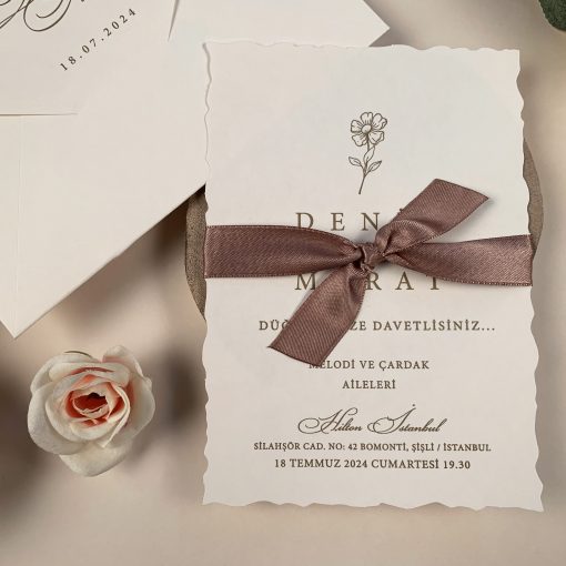 Invitatie de nunta cu panglica maro 96931