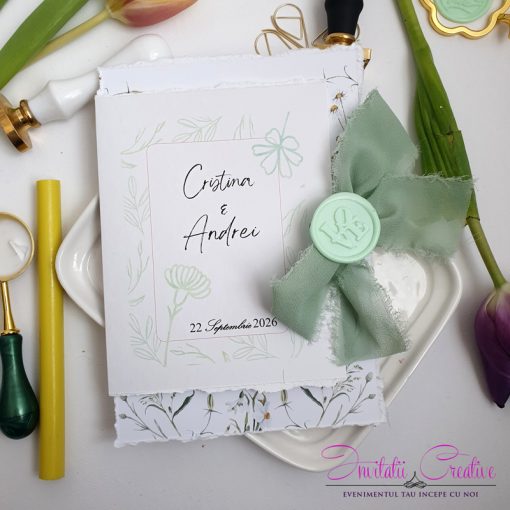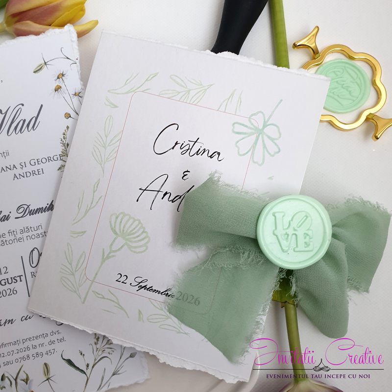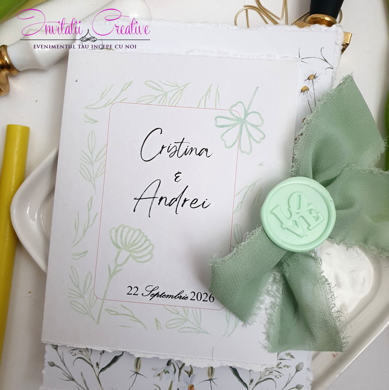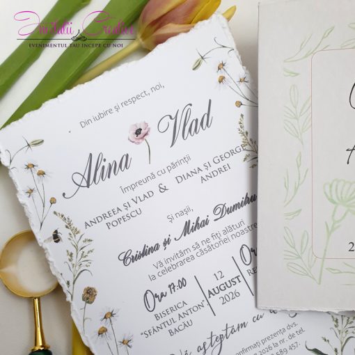 Invitatie de nunta cu detalii florale minimaliste