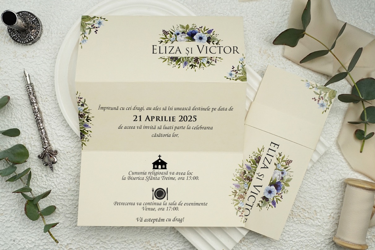Alege din sutele de modelele de invitatii potrivite pentru evenimentul tau cu tematici variate precum vintage, florale, moderne, clasice, haioase, ori poti opta pentru personalizarea cu poza preferata.