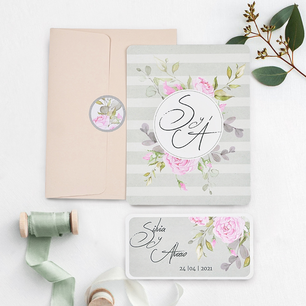 Invitatie de Nunta Eleganta cu Trandafiri roz 39740