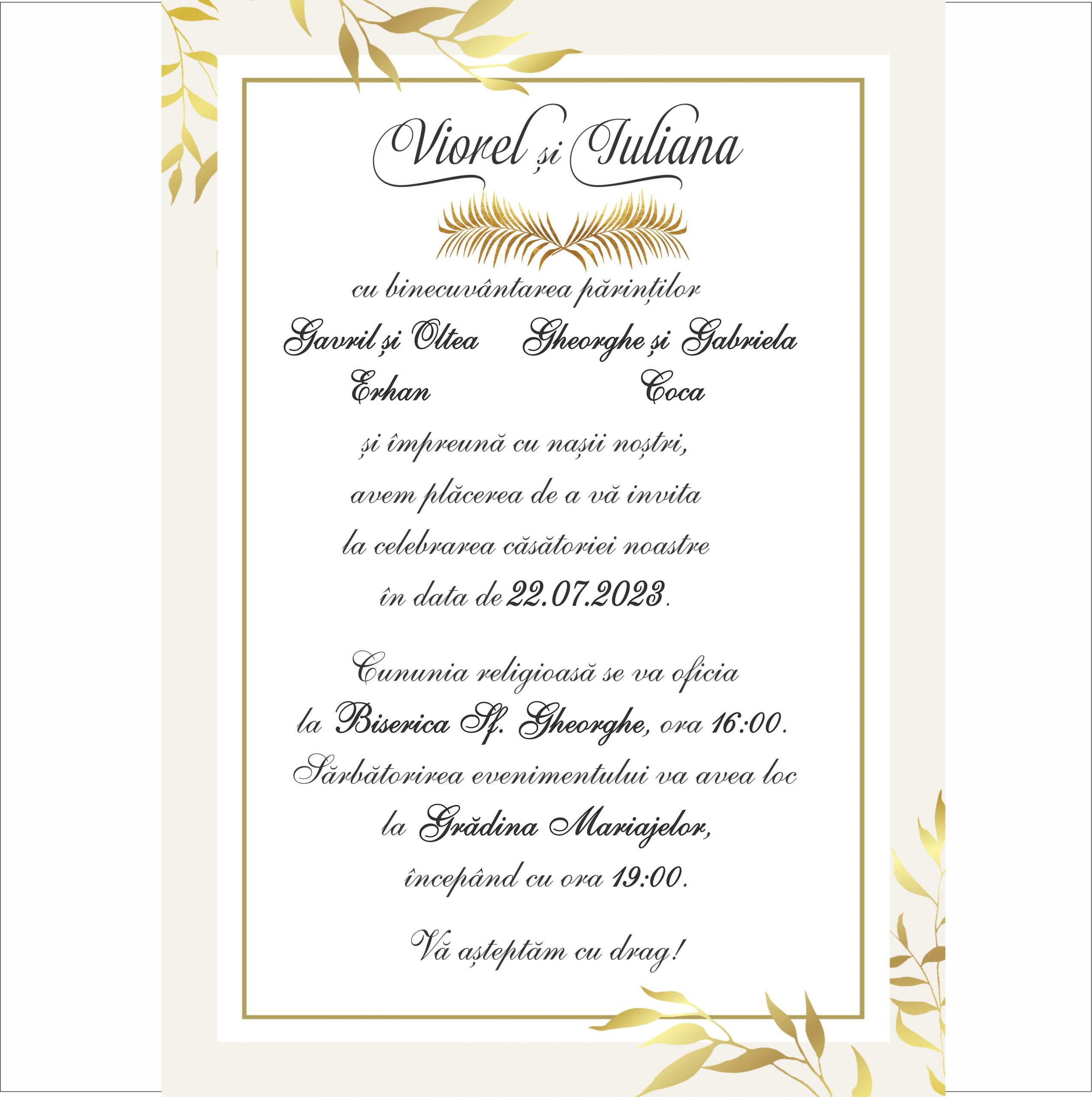 Invitatie Electronica Nunta cu Frunze Lauri Aurii